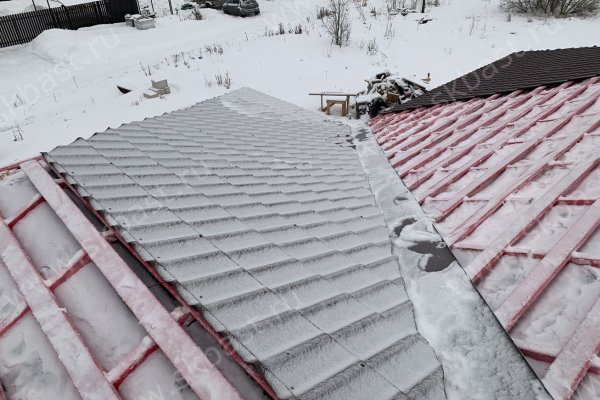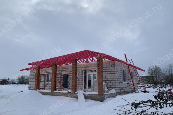 Несмотря на погодные условия, продолжается монтаж кровли на нашем объекте в поселке Олики.