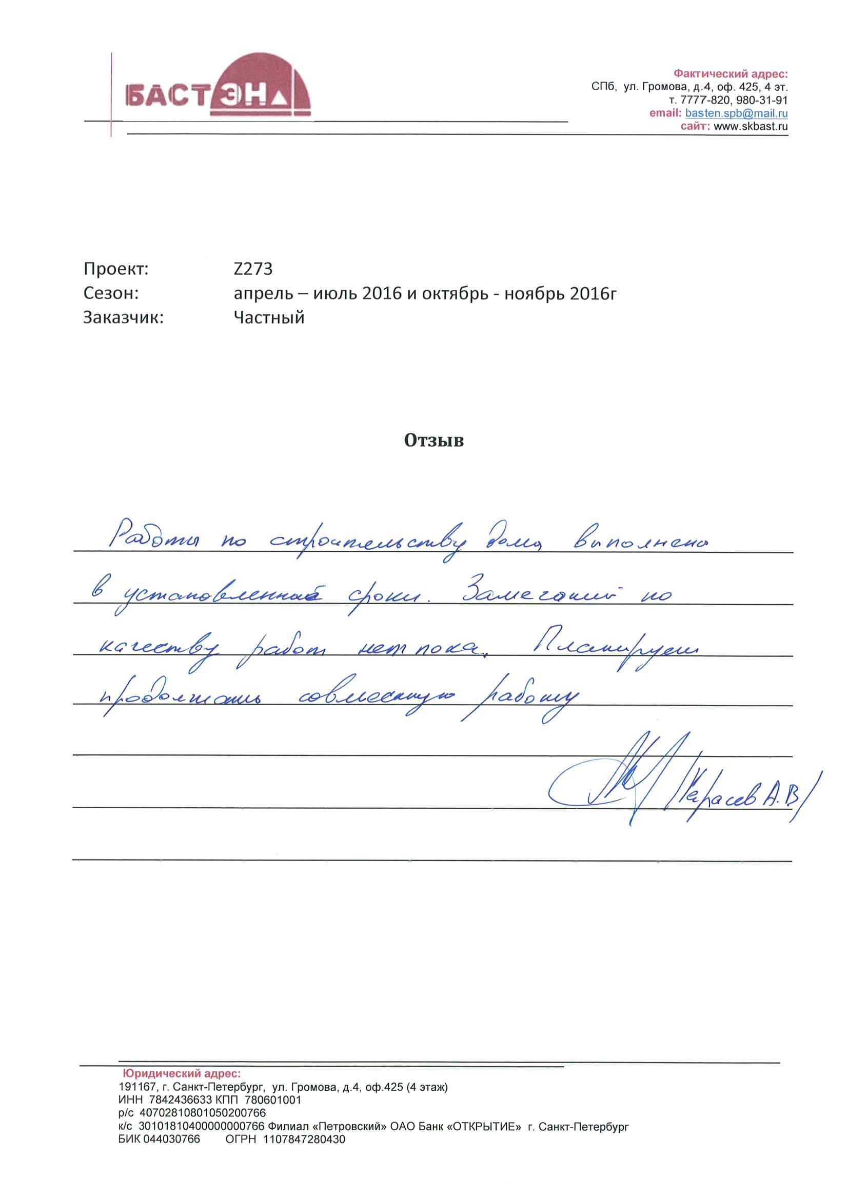 Работы по строительству дома выполнены в установленные сроки. Замечаний по качеству работ нет пока. Планируем продолжать совместную работу.