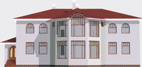 Проект дома №30-49 представляет собой двухэтажный жилой дом с общей площадью 393 м2. Он идеально подходит для строительства на просторном участке. Центральная часть здания выделяется скругленным ризалитом, в котором расположены широкие витражные окна, открывающие прекрасный вид на живописный ландшафт. Вход в дом выполнен в виде арочного прохода, который также служит въездом в гараж. На втором этаже находится большая гостиная и зимний сад, а также несколько жилых комнат, предназначенных для комфортного проживания большой семьи. Этот проект отличается своей функциональностью и просторными помещениями, идеально подходящими для создания уютной обстановки.
