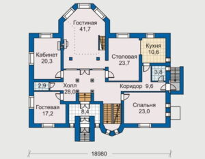 Проект дома №31-36 представляет собой добротный загородный дом, созданный для обеспечения высокого уровня комфорта самым требовательным владельцам. Этот двухэтажный дом с цоколем имеет общую площадь 550 м2 и включает в себя все необходимые помещения для комфортного проживания.