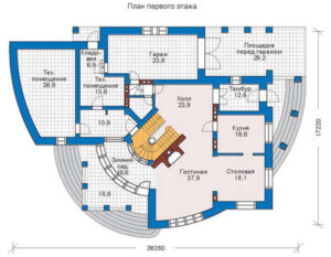 Дом имеет площадь 26 на 17 метров, что обеспечивает достаточно места для размещения всех необходимых помещений. В нем вы найдете все, что нужно для комфортного проживания: просторные комнаты, стильная и функциональная кухня, уютная гостиная и просторные ванные комнаты.