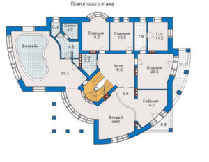 Особенностью этого проекта является наличие бассейна, где вы сможете расслабиться и насладиться свежим воздухом. Также в доме есть зимний сад, где можно выращивать растения и проводить время с семьей и друзьями в любое время года.