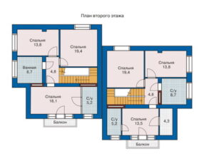 Дом имеет шесть спален, что позволит каждой семье иметь свое пространство и комфорт. Площадь дома составляет от 250 до 300 квадратных метров, что позволяет создать просторные и функциональные помещения.