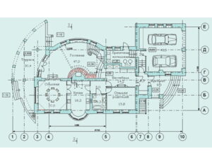 Проект дома №34-14 — это уникальное двухэтажное здание общей площадью 307 м2, специально разработанное для узкого участка с въездом с торцевой стороны. Фасады дома выполнены в контрастном стиле, что придает зданию оригинальность и позволяет его воспринимать по-разному с разных сторон. Внутри же дома продолжается этот композиционный принцип, где простая планировка спален сочетается с веерообразной гостиной, имеющей полукруглый балкон на втором этаже. Архитектурный облик здания сочетает в себе черты постмодернизма, конструктивизма и альпийского шале, с его выносами карнизов и двухчастным делением дома на высоте. Этот проект предлагает два гаража, террасу и котельную, а также пять спален на втором этаже. Все это делает дом идеальным выбором для тех, кто ищет современное и функциональное жилье площадью от 250 кв.м.