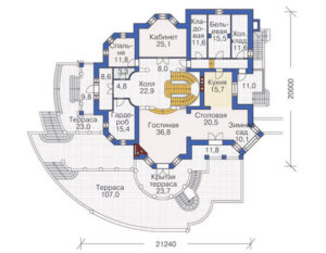 Представляем вам проект дома №36-06 — двухэтажного дома с цоколем размером 21 на 20 метров и общей площадью 768 м2. Этот просторный дом имеет особенность второго света, что придает ему еще больше естественного освещения и создает атмосферу комфорта. В доме также предусмотрен зимний сад, который станет идеальным местом для отдыха и расслабления в любое время года. Котельная позволит обеспечить надежное отопление, а также поддерживать оптимальный комфорт в доме. Данный проект подходит для семей, которые ценят простор и комфорт, ведь в доме предусмотрено семь спален. Наш проект также отличается наличием цокольного этажа, что позволяет использовать его по вашему усмотрению. Общая площадь дома составляет 768 м2, что создает множество возможностей для реализации ваших идей и планов. Если вы ищете дом, который сочетает в себе простор, свет и комфорт, то проект дома №36-06 с цоколем, зимним садом, террасой и котельной — идеальный вариант для вас.