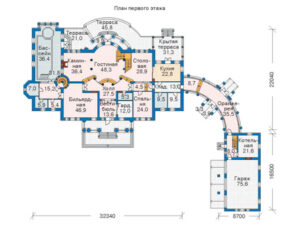 Представляем вам проект дома №36-08 — уникальное двухэтажное строение площадью 701 м2. Этот просторный дом имеет все необходимое для комфортного проживания большой семьи. В его состав входят семь спален, где каждый член семьи найдет свое уютное место для отдыха и сна.