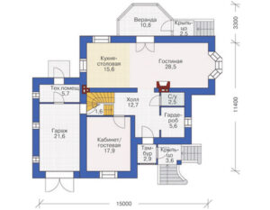 Представляем вам проект дома №37-33 — двухэтажный дом размером 15 на 14 метров, общей площадью 213 м2. Этот проект идеально подходит для тех, кто ищет просторные и комфортные жилые помещения.