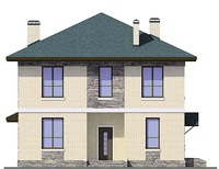 Проект дома №40-73 подходит для тех, кто ищет просторный и функциональный дом площадью 150-250 кв.м. Его двухэтажная конструкция обеспечит удобство и разделение пространства на разные зоны, а терраса добавит возможность наслаждаться свежим воздухом и прекрасным видом.