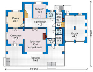 Представляем вам проект дома №41-38 — уникальное сочетание комфорта, стиля и функциональности. Этот дом с мансардой имеет размеры 23 на 19 метров и общую площадь 346 квадратных метров. Он идеально подходит для большой семьи, благодаря своим семи просторным спальням.