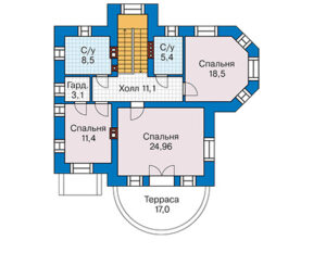 Этот проект подойдет людям, которые предпочитают двухэтажные дома. Второй этаж добавляет дополнительное пространство и возможность разделить зоны для отдыха и работы.