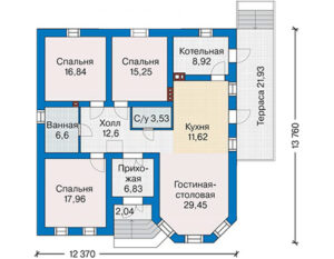 Представляем вам проект дома №42-48 — уютный и функциональный одноэтажный дом размером 12 на 13 метров. Общая площадь этого дома составляет 129 квадратных метров, включая террасу, которая дополняет его пространство и добавляет комфорта.