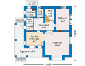 Особенностью этого проекта является наличие террасы, которая создает уютную атмосферу для отдыха и общения с семьей и друзьями. Кроме того, дом оснащен котельной и кухней-столовой, что делает его идеальным для комфортного проживания.