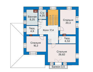 Представляем вам проект дома №42-86 — уникальное двухэтажное здание площадью 218 м2. Этот просторный дом с пятью спальнями идеально подходит для семьи любого размера.