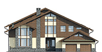 Проект дома №43-50 отличается мансардной конструкцией с цоколем и гаражом, что придает ему уникальность и функциональность. Такой дом подойдет для семей с большим количеством спален, а также для тех, кто предпочитает стиль шале.