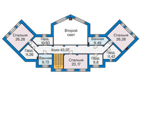 Представляем вам проект дома №43-64, который обладает всем необходимым для комфортного проживания. Этот дом с мансардой имеет общую площадь 492 м2 и включает в себя шесть просторных спален. Особенностью проекта является наличие второго света, который придает дополнительное освещение и создает ощущение простора.