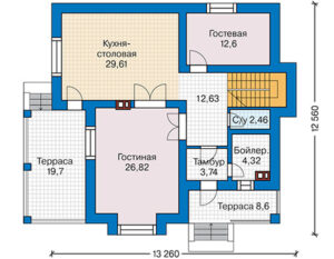 Основные особенности этого проекта включают террасу, котельную и кухню-столовую. Терраса — отличное место для отдыха и проведения вечерних посиделок с семьей и друзьями. Котельная обеспечит надежное отопление дома, а кухня-столовая станет центром семейных встреч и приятных ужинов.