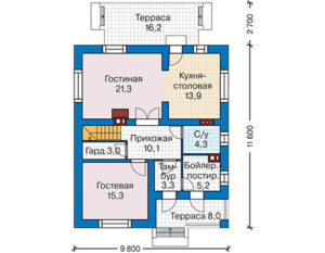 Проект дома №44-40 отличается своей компактностью и удобством. Он идеально подходит для тех, кто хочет иметь уютное жилье площадью до 150 квадратных метров с террасой.