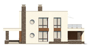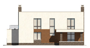 Проект дома представляет собой современное сочетание функциональности и стиля. С его плоской крышей, он выглядит современно и элегантно. Внутри дома есть гардеробные, которые обеспечат удобное хранение вещей. Также, проект включает два гаража, что позволит вам не беспокоиться о парковке автомобилей.