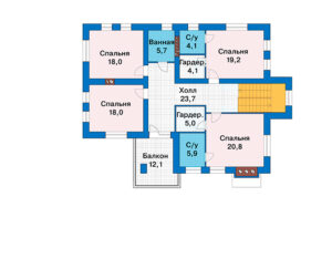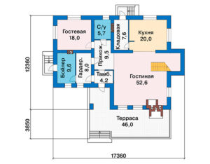 Особенностью этого проекта является наличие террасы, котельной и кухни-столовой. А еще, дополнительно к основной площади, вас порадует терраса и балкон площадью 58,60 кв.м.