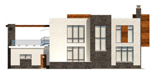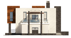 Проект дома выполнен в стиле хай-тек, что придает ему современный и элегантный вид. Благодаря плоской крыше, дом выглядит стильно и современно. Большое панорамное остекление добавляет света и простора внутренним помещениям.
