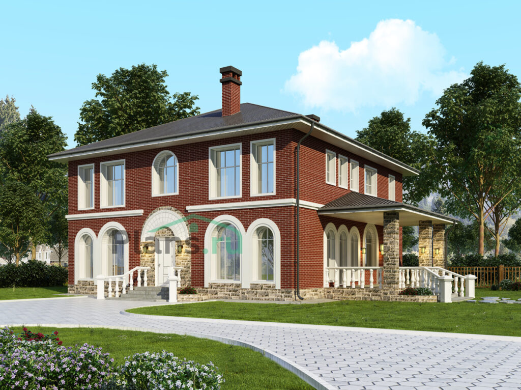 Представляем вам проект дома №48-55 — уютный двухэтажный дом в английском стиле. Этот просторный дом площадью 230 м2 обладает всеми необходимыми удобствами для комфортного проживания. В нем есть семь просторных спален, где каждый член вашей семьи найдет свое уютное место. Дом также оснащен гардеробными, чтобы у вас было место для хранения ваших вещей.
