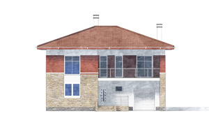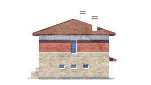 Особенности этого дома включают в себя гараж, террасу, котельную, лоджию и кухню-столовую. Помимо этого, в проекте предусмотрена также терраса и две лоджии, площадью 22,30 кв.м.