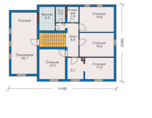 Наш проект отличается разнообразием возможностей. Внутри вы найдете пять просторных спален, в которых вы сможете отдохнуть и расслабиться в уютной обстановке. Наличие сауны добавит особый шарм вашему дому, позволяя вам наслаждаться процедурами релаксации прямо у себя дома.