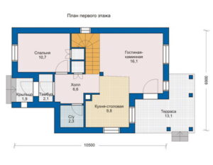 Представляем вам проект дома №51-50 — уникальный двухэтажный дом размером 10 на 6 метров с общей площадью 103 м2. Этот проект идеально подходит для тех, кто ищет функциональное и стильное жилье.
