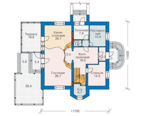 Этот проект идеально подходит для большого участка, где можно создать уютную и благоустроенную территорию. А благодаря цокольному этажу, в доме есть дополнительное пространство, которое можно использовать по своему усмотрению.