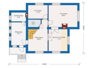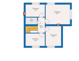 Особенностью этого проекта является наличие пяти спален, что позволяет каждому члену семьи иметь свое пространство для отдыха и личной жизни. Кроме того, в доме предусмотрена котельная, что обеспечивает надежное и эффективное отопление в холодные времена года.