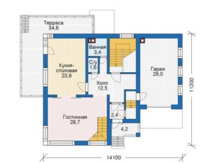 Представляем вам проект дома №56-16 — уникальное сочетание мансарды и цокольного этажа, созданное для тех, кто ценит комфорт и простор. Дом имеет размеры 14 на 11 метров и общую площадь 306 квадратных метров. В этом проекте вы найдете все необходимое для удобства и уютной жизни: гараж, террасу, котельную и кухню-столовую.