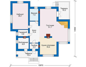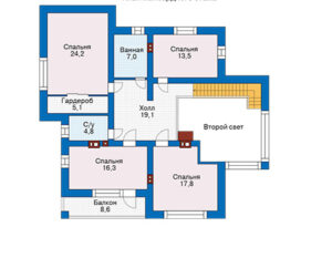 Этот проект подходит для тех, кто ищет просторный дом с четырьмя спальнями. Каждый член вашей семьи найдет свое уютное место для отдыха и комфорта. И если вы мечтаете о камине, то этот проект дома воплотит вашу мечту в реальность.
