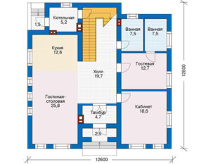 Представляем вам проект дома №57-91 — уникальный двухэтажный дом размером 12 на 12 метров. Общая площадь этого прекрасного жилища составляет 235 квадратных метров. В его состав входит котельная, обеспечивающая комфорт и тепло в холодные дни. Дополнительно, дом украшают два крыльца площадью 4 квадратных метра каждое.