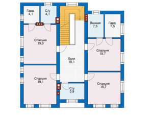 Этот проект идеально подходит для большой семьи, ведь в доме предусмотрено целых пять спален. Это позволит каждому члену семьи иметь свое пространство и комфорт. Кроме того, в доме есть камин, который создает уютную и романтическую атмосферу.