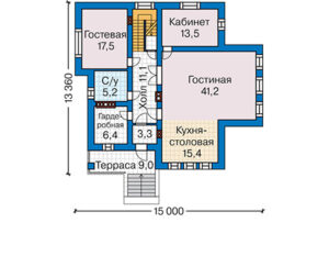 Представляем вам уникальный проект дома №58-27 — двухэтажного дома с цоколем, имеющего размеры 15 на 13 метров и общую площадь 343 м2. Этот проект идеально подходит для больших семей, ведь в нем предусмотрено семь просторных спален.