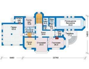 Представляем вам проект дома №58-85 — уникальное двухэтажное строение с цоколем размером 31 на 14 метров и общей площадью 614 м2. Этот проект включает в себя все необходимое для комфортного проживания и отдыха. В доме есть восемь просторных спален, идеально подходящих для большой семьи или приема гостей. Также в проекте предусмотрен гараж для вашего автомобиля, чтобы обеспечить удобство и безопасность. Но это еще не все — в доме есть бассейн, где вы сможете расслабиться и насладиться водными процедурами, а также терраса, где можно проводить время на свежем воздухе и наслаждаться прекрасным видом. Кроме того, в проекте предусмотрена котельная, чтобы обеспечить комфортное отопление вашего дома. Дополнительным преимуществом является наличие террасы площадью 17,2 квадратных метра, где вы сможете проводить время с семьей и друзьями. Этот проект идеально подойдет для тех, кто ищет двухэтажный дом с цоколем, гаражом и всеми удобствами для комфортной жизни.