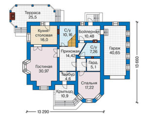 | Дополнительно: | Кухня-столовая, Котельная, Терраса, 1 гараж |