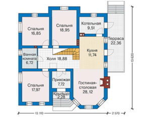 Представляем вам проект дома №60-07 — уютный одноэтажный дом в английском стиле. Этот дом имеет общую площадь 136 квадратных метров, включая просторную кухню-столовую и котельную. Особенностью этого проекта является наличие террасы площадью 24,64 квадратных метра, где вы сможете наслаждаться свежим воздухом и прекрасными видами. Дом предлагает четыре спальни, что обеспечит комфортное проживание для всей семьи. Благодаря эркеру, в доме будет много естественного света, что создаст атмосферу уюта и комфорта. Проект дома №60-07 — это идеальный вариант для тех, кто ищет недорогой и практичный одноэтажный дом с террасой. Не упустите возможность создать свой уголок счастья и уюта!