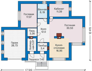 Представляем вам уникальный проект дома №60-19 — просторный одноэтажный дом размером 17 на 12 метров. Общая площадь этого уютного жилища составляет 132 квадратных метра. В этом проекте вы найдете все необходимое для комфортной жизни: гараж, котельную и кухню-столовую. А еще — прекрасное крыльцо площадью 7,9 квадратных метров, где можно наслаждаться свежим воздухом и приятными летними вечерами.
