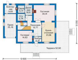 Кухня-столовая станет идеальным местом для семейных завтраков и ужинов, а котельная обеспечит надежное отопление вашего дома. Также в проекте предусмотрена сауна, где вы сможете расслабиться и насладиться процедурами.