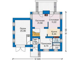 Представляем уникальный проект дома №62-56 — просторного и стильного жилища с мансардой. Этот дом имеет размеры 12 на 10 метров и общую площадь 137 квадратных метров, включая гараж, террасу, котельную и кухню-столовую.