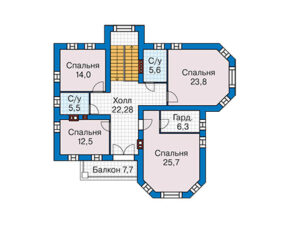 Этот проект идеально подходит для большой семьи, так как в нем предусмотрено шесть просторных спален.