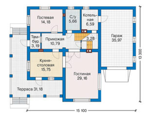 | Дополнительно: | Кухня-столовая, Котельная, Терраса, 1 гараж |