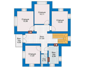 Представляем вам проект дома №62-99 — двухэтажный дом размером 13 на 13 метров, общей площадью 174 м2. Этот дом идеально подходит для большой семьи, ведь в нем предусмотрено целых шесть спален.