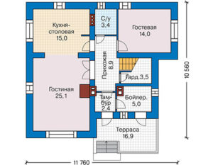 Особенностью этого проекта является наличие террасы, которая позволит вам наслаждаться свежим воздухом и красивыми видами. Кроме того, дом оснащен котельной, что обеспечит надежное отопление в холодные времена года.