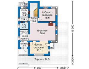 Особенностью этого проекта является наличие террасы, где вы сможете наслаждаться свежим воздухом и прекрасными видами. Кроме того, в доме предусмотрена котельная и просторная кухня-столовая, где вы сможете проводить время с семьей и друзьями.