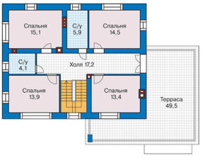 Представляем проект дома №65-49 — двухэтажный дом размером 16 на 11 метров. Общая площадь дома составляет 203 квадратных метра. В этом проекте вы найдете все необходимое для комфортной жизни: гараж, террасу, котельную и кухню-столовую. Кроме того, дополнительно есть террасы площадью 58,60 квадратных метров. Этот дом идеально подходит для больших семей или тех, кто нуждается в просторных спальнях. Всего в доме шесть спален. Гараж предоставляет удобство для хранения автомобиля, а терраса — прекрасное место для отдыха и проведения времени с семьей и друзьями. Этот проект подходит для тех, кто ищет дом площадью от 200 до 250 квадратных метров. Надеемся, что наш проект сочетает в себе все ваши желания и требования!