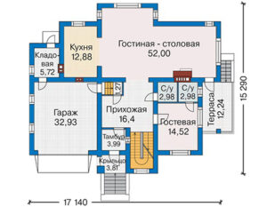 Дополнительно: | Кухня-столовая, Котельная, Терраса, 1 гараж |