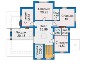 Этот проект включает в себя все необходимые помещения для комфортного проживания. В доме предусмотрены восемь спален, где каждый член семьи сможет найти свой уютный уголок. Кроме того, здесь есть гардеробные, где можно хранить одежду и личные вещи.