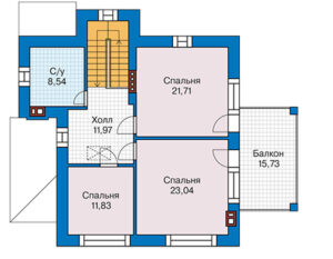 Особенностью этого проекта является наличие балкона площадью 37,07 кв.м. Здесь вы сможете наслаждаться утренним кофе с панорамным видом на окружающую природу.